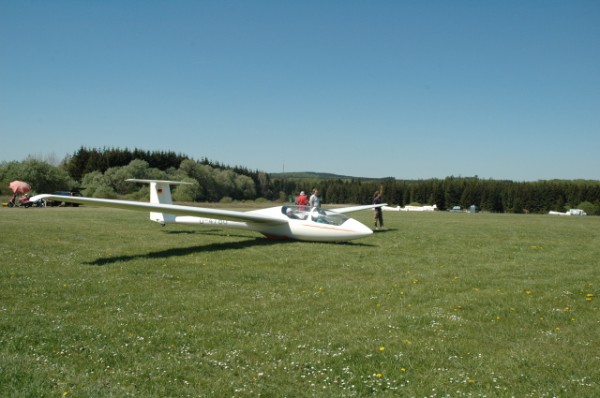 Gleich gehts los! Der Starthelfer an der Fläche hat schon seinen Arm gehoben, um dem Schlepppiloten die Startbereitschaft der Segelflugbesatzung anzuzeigen.