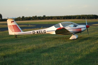 Bei der D-KELG handelt es sich um einen zweisitzigen Motorsegler des Typs Dimona H36. Angetrieben von einem Limbach Motor mit 80 PS, der preiswertes Autobenzin verträgt, erreicht sie in der Luft passable 150 km/h Reisegeschwindigkeit.